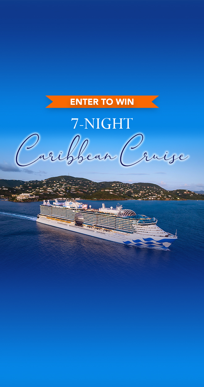 ONE (1) PRIZE: The prize is applicable for any one (1) World Travel Holdings (Dream Vacations or CruiseOne) Princess Cruises 7-night Caribbean cruise, with a maximum value of up to $5,000 USD. Air arrangements, insurance, airport transfers, extra nights and optional excursions are not included and are at the winner's expense. All expenditures for passports, visas, gratuities, and personal items are the responsibility of the winner. Once the booking is confirmed, name changes and/or revisions to travel dates, requiring additional cost, are the responsibility of the winner and not covered by original prize value. The winner must claim the prize and book vacation for travel by April 30, 2026 and sail by February 30, 2027. The prize is valid only for the winner and cannot be transferred, sold, or redeemed for cash. The winner will book this Princess Cruises 7-night Caribbean cruise with the respective travel agent. Subject to availability. Additional terms and conditions may apply.